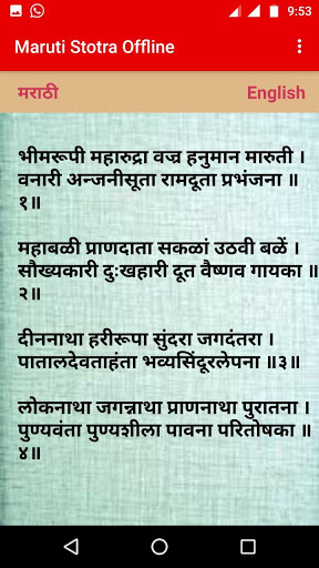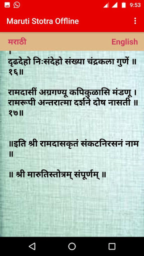 Maruti Stotra (Bheema Roopi) or Hanuman Stotra is a 17th-century stotra, hymn of praise, composed in Marathi language by saint-poet of Maharashtra, Samarth Ramdas. It is a compilation of praiseful verses that describe the many aspects and virtues of Maruti Nandan or Hanuman.