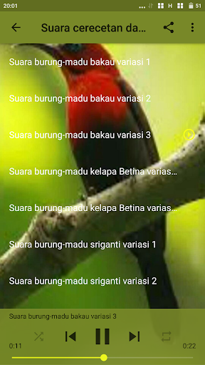 Burung madu adalah jenis burung yang sangat digemari di Inbdonesia, pesona kicaunya yang sangat merdu semakin membuat para pecinta burung di tanah air tergila-gila dengan burung ini. Aplikasi ini merupakan sebuah solusi bagi anda pecinta burung dan pemilik burung madu untuk melatih burung madu anda menjadi burung madu juara, menjuarai berbagai kontes dalam kejuaraan. Aplikasi ini berisi kumpulan berbagai macam kicau burung madu untuk melatih dan menterapi burung madu anda.