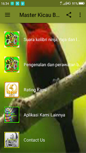 - Jadikan kicau sebagai nada alarm, notifikasi dan nada panggilan