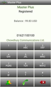 Master Plus mobile dialer is a very easy and user friendly android dialer for Mobile VoIp call. The dialer can run smoothly in any version of android phone. This small and easy installable app help you to connect with your service provider provided soft switches quickly. Master Plus mobile dialer required a minimum bandwidth for connecting and originating VoIP calls. User may charge through their telecom operators for data services. It’s run smoothly in any private network.