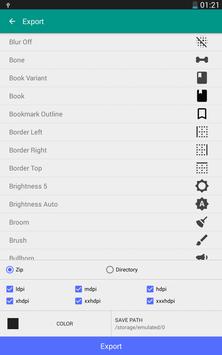 You can multi select all icons that you need and export them in an android project format (drawable-*dpi folders).