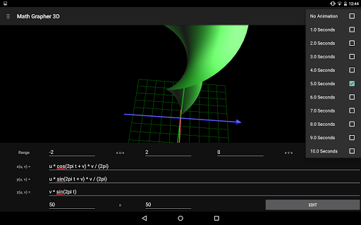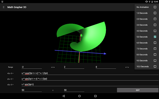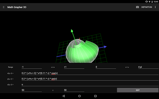 - user definable parametric surfaces: x(u, v), y(u, v) amd z(u, v)