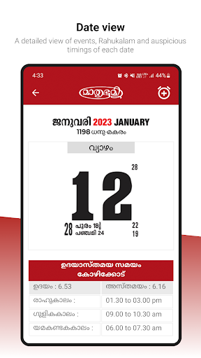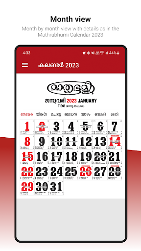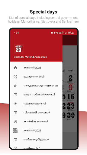 The best Malayalam calendar app in the market. Mathrubhumi Calendar has all the features. Central government holidays are listed in “Kendra Sarkar Avadhi”. Visheshadivasangal gives you special days, common festivals and celebrations in Kerala. Feature Karshikam gives the most suitable time for planting and harvest. Best muhoorthangal for a day available in “Muhoorthangal”. Nakshtraphalangal describes the details of the Zodiac sign, the birth star for the wonderful year. And it shows njattuvela details in “Njanttuvelayum Samkramavum“.