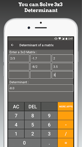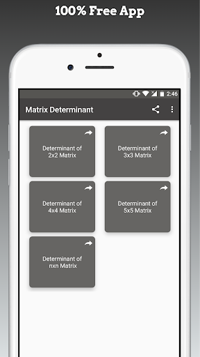 This free app is a math calculator, which is able to calculate the determinant of a matrix. The determinants of following matrices are available:
