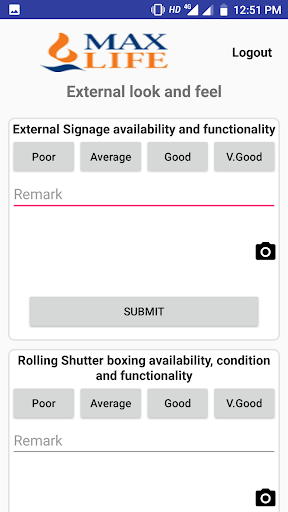 This app provides complete audit of Max life Insurance offices at various location .The reports are fetched at one console with complete reports and ratings.