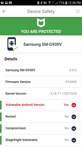 McAfee MVISION Mobile protects large organizations and their employees from device vulnerabilities, network-based attacks and risky or infected applications.
