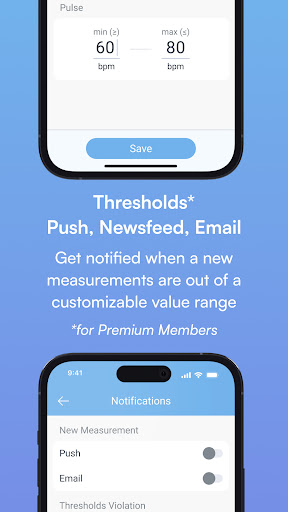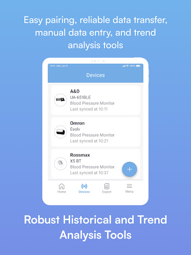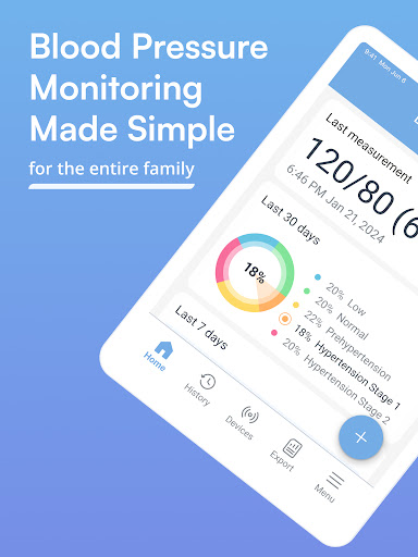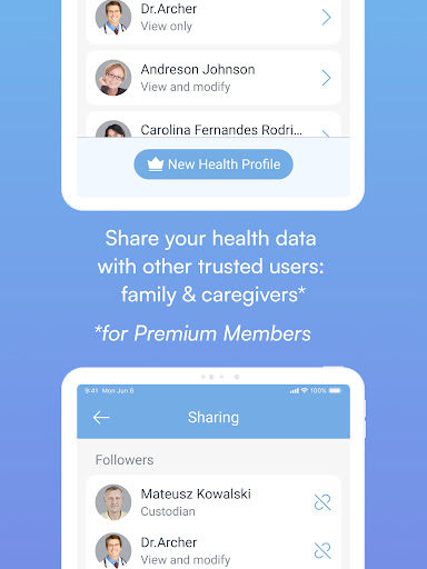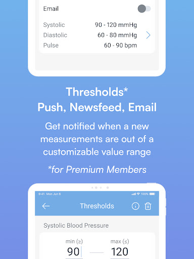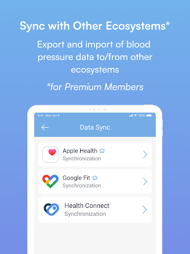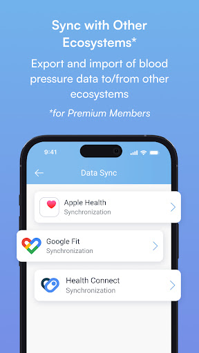 Optional integration with MedM Health Cloud is available to registered users and makes it possible to not only store, backup, and export blood pressure history securely and reliably, but also to share it with family, caregivers, and physicians. Please note that some features also require a subscription.