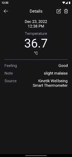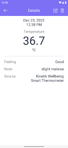 This app is especially useful for keeping track of fever during an illness. All users can view measurements history and trends in graphs. Data can be recorded and viewed in Fahrenheit or Celsius.