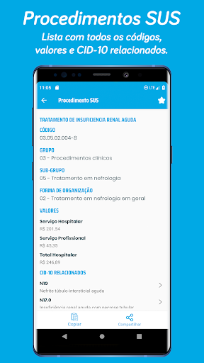 Lista com todos os códigos de procedimentos do SUS, valores e CID-10 relacionados.
