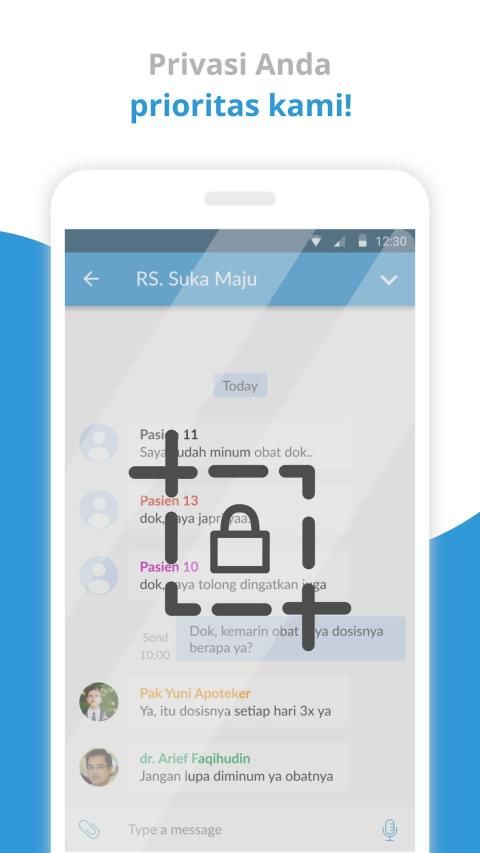 Kami peduli dengan privasi Anda karena kami percaya Anda harus merasa percaya tentang bagaimana kami mengelola informasi pribadi Anda. Setiap pesan yang dikirim ke obrolan dijamin dengan enkripsi end-to-end, yang berarti pihak ketiga tidak dapat membacanya dan juga tidak ada tangkapan layar yang tersedia di MedUp Messenger.