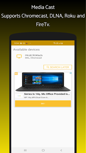 Media cast enables the user to cast the images, video, and audio to chromecast, firetv, Roku and DLNA enabled smart tv.