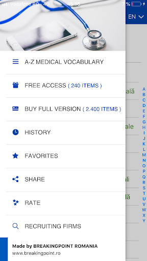 - access to more than 2,400 medical entries in both English & Romanian (240 entries are free)