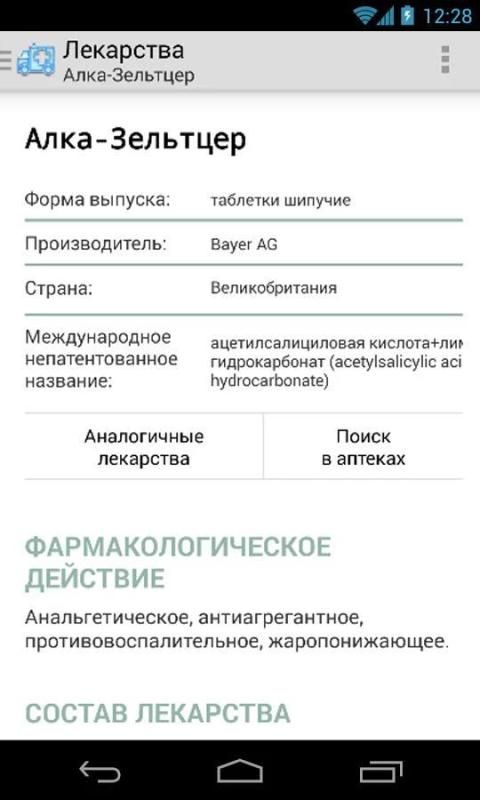 Additionally, the application works voice search, favorites, history, appearance adjustment. Monthly Update of medicines in accordance with GRLS (National Register of medicines).