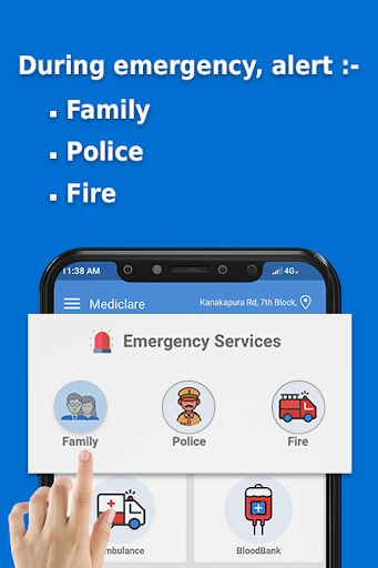 2.In addition you soon will be able to choose services to avail during emergency/SOS situation like order medicines online, book appointments with doctors near you, find ambulances near you etc.