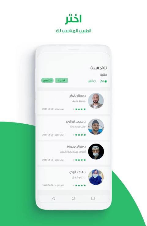 التطبيق سهل الاستخدام و يساعدك في البحث عن الطبيب المطلوب وعن مواعيد عمله المتوفره وعن العيادات التي يعمل بها كما يتيح لك الاطلاع على آراء وتجارب أشخاص آخرين مع هذا الطبيب ويتيح لك تقييم تجربتك الخاصة.