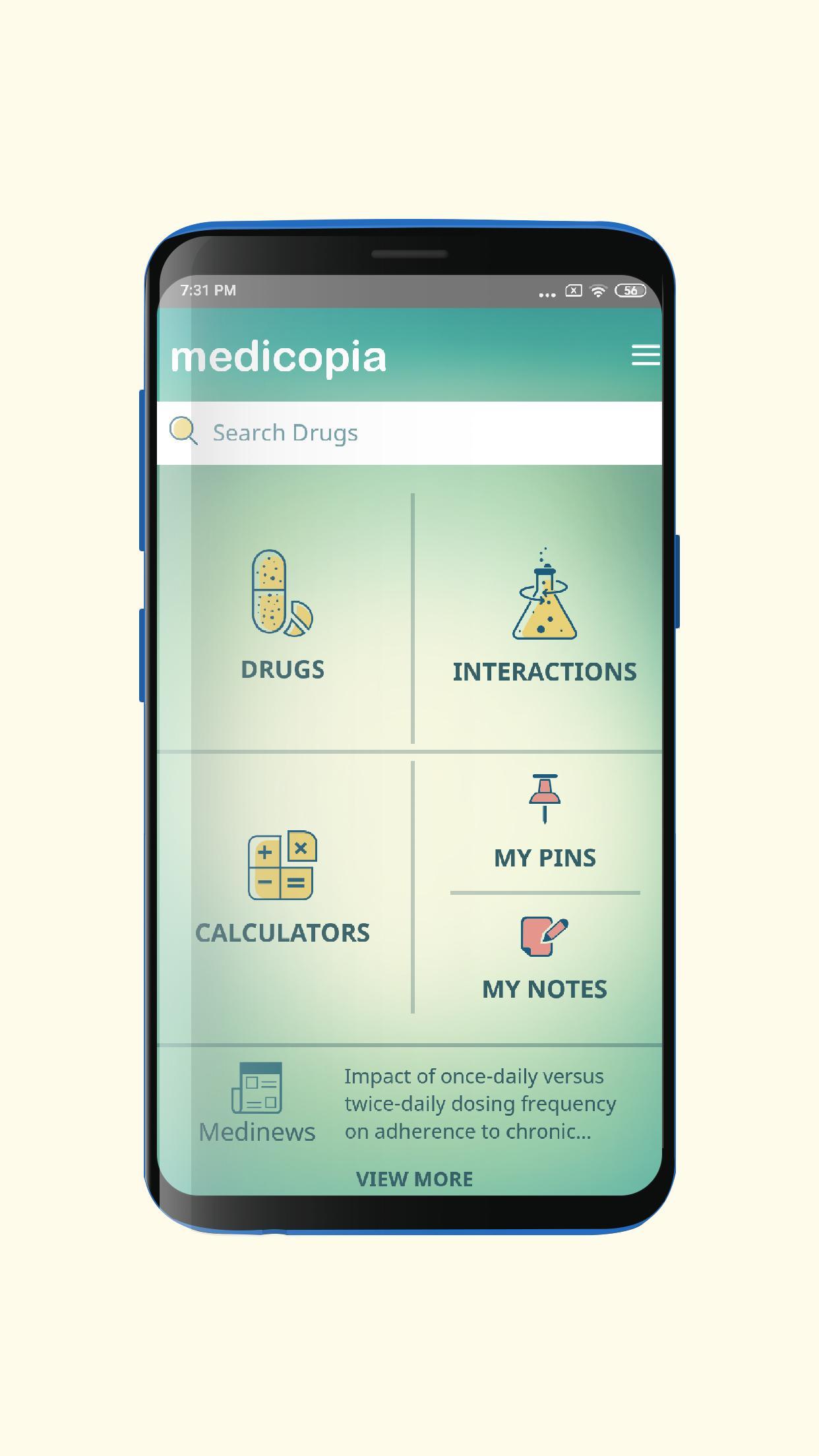 Medicopia, created by senior doctors, is a mobile pharmacopeia app intended for use by healthcare professionals at the point of patient care. It serves as a reference tool allowing health care providers to access prescription information on medications approved for use in the Indian market.