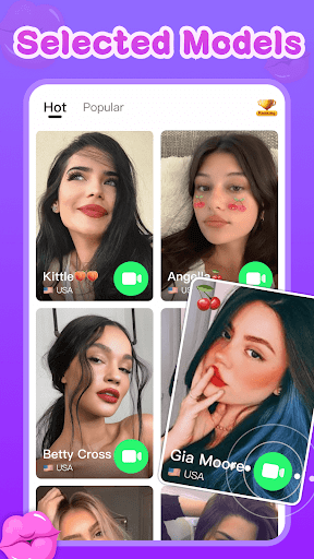 Kiss is a new trend online video chat app. Here gathers lots of talented Stars and beautiful single models all over the world. Video Chat, Random Match and Text Message, connect with anyone from anywhere in the world with a single tap! It is a really easy and fast way to meet new people!