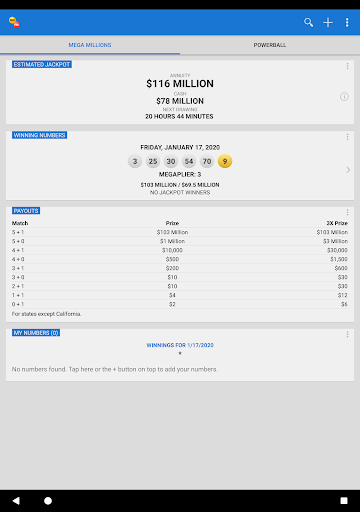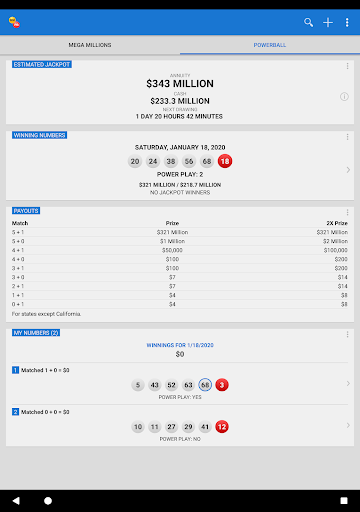 Mega Millions and Powerball are the two biggest lottery jackpot games in the US. The Mega Millions & Powerball app provides the latest jackpot information and drawing results. If you need state lottery games, please download our free Lotto Results app.