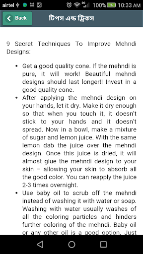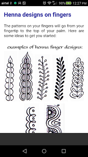 Recently researches proved that, henna designs (also known as temporary tattoo) are more friendly to human health as it does not contains any artificial chemicals. So, women now prefer henna mehndi design over cosmetics. To decorate your hand or finger beautifully there are many tattoo design apps. Our app is a beginners guide (mehendi tutorial) with tips on how to draw henna designs.
