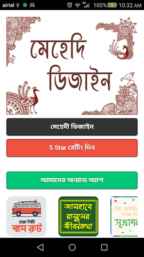 Mehdi design is an age old tradition in Bangladesh. This free Bangla app has mehndi designs 2020 latest. You can use many mehndi design image provided in this app to decorate yourself for festivals like pahela baishakh, 21 february, victory day (16 december), wedding, birthday, happy new year etc. Use these mehndi designs all types to take makeup. If you run beauty parlour, can use this mehdi designer 2020 app as your beauty tips in Bangla.
