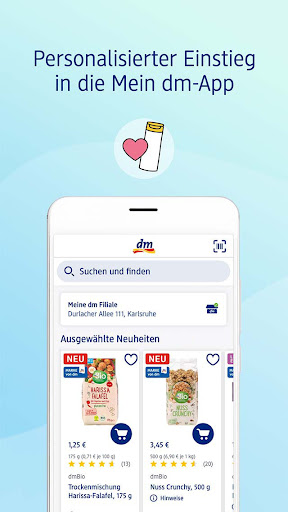 2.Зарегистрируйтесь в сведении моей учетной записи My DM или зарегистрируйтесь на новую учетную запись клиента. BR> Как только вы позвоните в приложение, вы получите свою собственную домашнюю страницу.Здесь вы найдете различные основные моменты и рекомендации, а также выбор новых продуктов.Отсюда у вас также есть прямой доступ к нашему формату в прямом эфире видео по магазинам DMLive. Вы получаете быстрый и простой обзор диапазона.Просто нажмите на наш ассортимент, найдите определенные бренды или сканируйте продукты, смотрите ранее приобретенные продукты, поместите их на механизм, поделитесь списком с друзьями или напрямую откройте их.