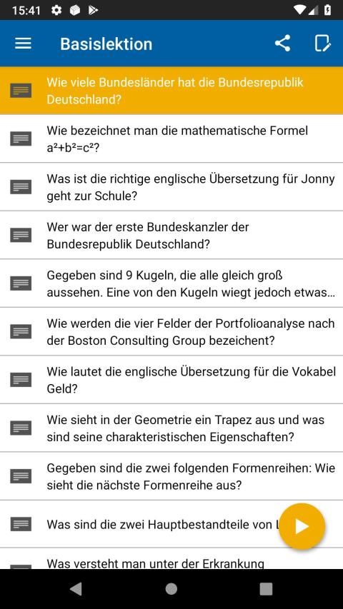 Sie können ganz bequem zwischen drei verschiedenen Lernmethoden auswählen, die das Gelernte noch besser festigen. Lassen Sie sich per Push-Nachrichten über die tagesaktuell zu lernenden Inhalte informieren. Die persönlichen Lernstatistiken bieten strukturierte Übersichten zu Ihren bisherigen Lernerfolgen, der investierten Lernzeit und dem eigenen zukünftigen Lernplan.