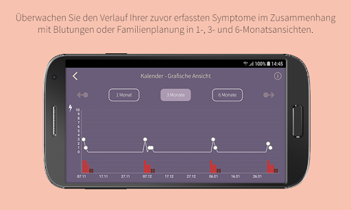 -Kinuha ang gamot na nais mo upang sundin sa menu ng kalendaryo (ang aking gamot) , Buwan at listahan ng mga view pati na rin ang mga graphic view (1, 3 o 6 na buwan) upang subaybayan ang pagdurugo o pagpaplano ng pamilya