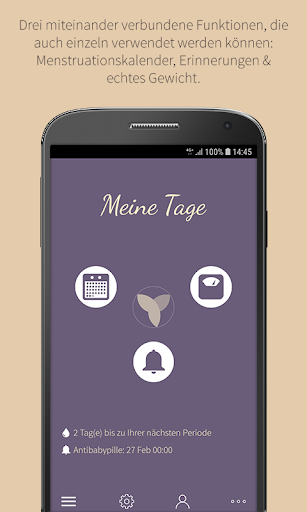 Gamit ang app na "Aking Mga Araw" madali mong masubaybayan ang iyong mga reklamo sa ginekologiko at ang iyong buwanang pag -ikot kasama ang regular at iregularidad nito.Maaari kang dumikit at subaybayan ang iyong timbang, paggamit ng mga kontraseptibo pati na rin ang intermediate na pagdurugo at sakit sa pangmatagalang panahon.Ang iyong pagpaplano at talakayan ng pamilya sa doktor ay kapaki-pakinabang din. interface