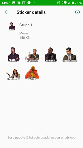 El uso es simple, presione el botón Agregar el paquete y acepte.Luego, simplemente revise la página de pegatinas, el nuevo paquete tiene que estar allí.