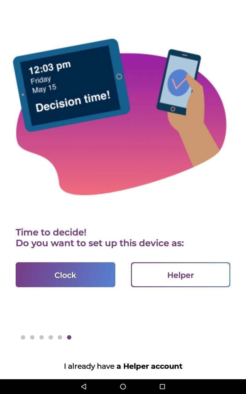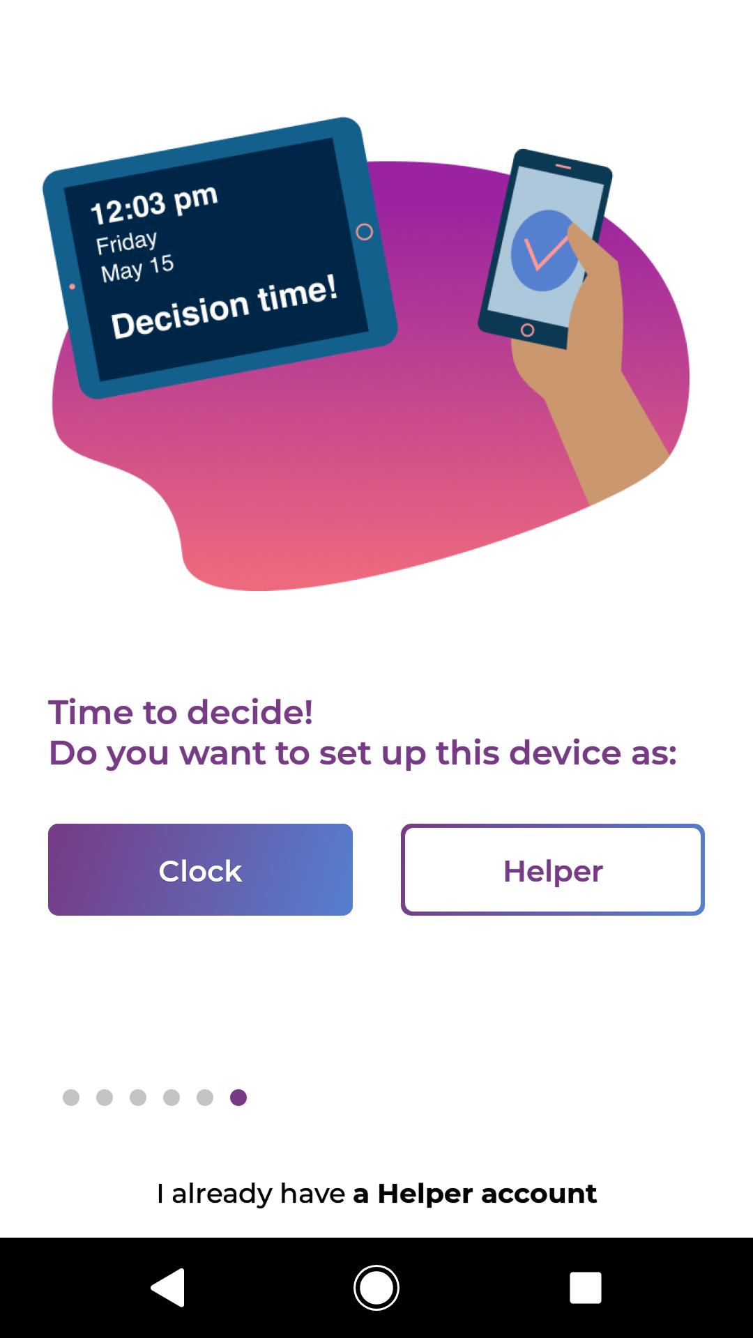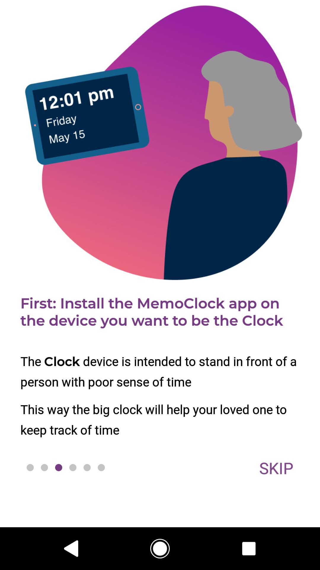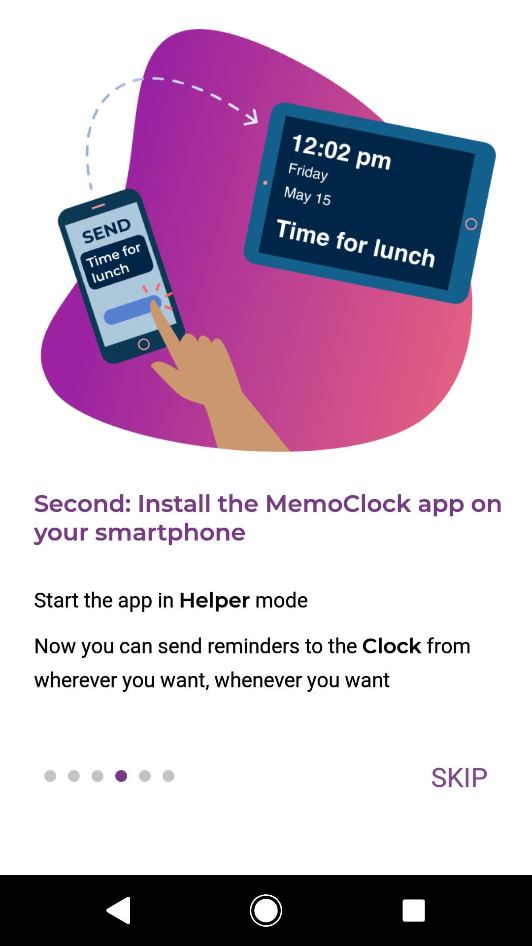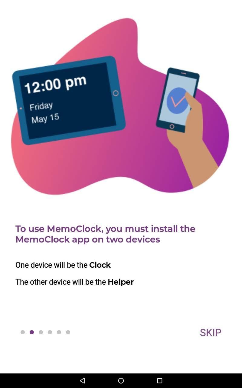 To use MemoClock, you must install the MemoClock app on two devices. One device will be the Clock. The other device will be the Helper.