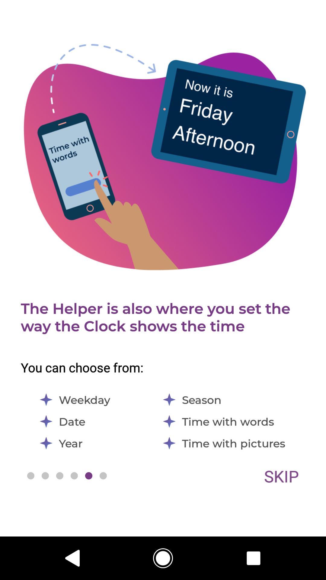 Now the Helper and the Clock are connected, and you can start sending reminders. From the Helper, you are also able to change the way the time is shown on the Clock.