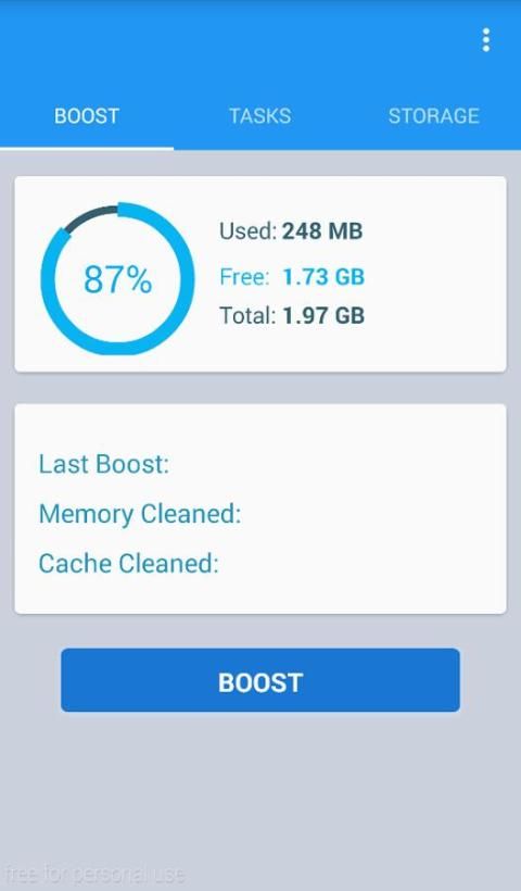 Memory Booster Smart Utility Boost now yours smartphone/tablet performance! It's free! App features:? Show the total available and used memory? Accelerate button that frees the memory? Display all running applications and how much memory they are using Observation:it is not an antivirus. Uncharged state, In addition to detailed battery information, you can also understand the remaining power and battery life in uncharged state. The original and best cache cleaning app for Android. It optimizes your phone's performance and boosts its speed by cleaning all cache & junk files, thumbnails, unwanted apps, or media. Furthermore, with the advanced task manager (Memory Booster - Android RAM Optimizer), Battery Booster can perform better and help you get the best battery saving results!HIGHLIGHTS:USER-FRIENDLY * Interactive design for easy control*