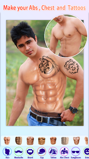 Men Photo Editor is a all in one photo editor for men and man makeup app, which supports hair styles or hair style, mustache, beard, body styles, abs, tattoo, hairstyles, six pack, face editing, acne remover, hair color, filters, accessories and beauty features. Man hairstyle photo editor or man photo editor pro is a complete men beauty photo editor.