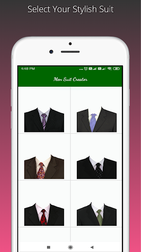 Men Suit Creator app lets you try on different men's fashion, style, trends & shopping suits and check on yourself. Just a single click and you can try wide variety of lifestyle men suits on you. Man Suit Creator lets you add better men suits to the pictures either from gallery or the camera.you can take your phone to local photo print service providers and get it printed.