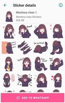 This app contains a large collection of packs of Menhera chan Stickers for WhatsApp. Cute Kawaii Menhera-chan for WhatsApp stickers collection, with many different stickers set. Now express yourself using awesome Menhera-chan Stickers with WAStickerApps.