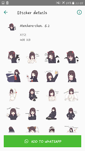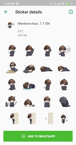 Kawaii Menherachan Whatsapp Sticker collection. Cute sticker character whatsapp menherachan with English text, 600 sticker added with different themes, season, event, and much more. If you like anime, you will be like this application for your anime sticker whatsapp collection.