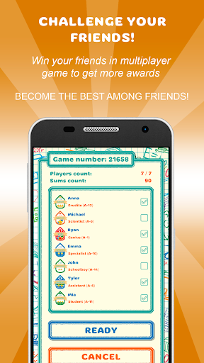 Game points and achievements increase player rating. Ranking system stimulate player to move forward for the next rating doing more sums getting more awards playing more multiplayer games. There are 15 game statuses from the “beginner” to “genius”.