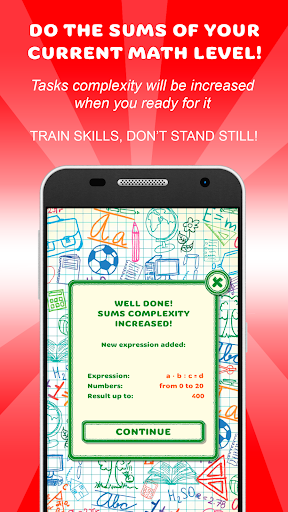 Whilst playing application automatically adjusts for a players desired difficulty level. But we encourage you to complete learning mode before your first game run. Thus your kid will skip annoying easy tasks and start to do more complex sums.