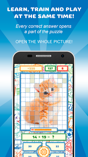 Doing sums kid opens pretty pictures with different cute animals. Each correct answer brings the player closer to the goal - to open the whole picture. For greater experience and higher involvement of the player there are also a lot of awards for different kind of achievements, a player rating, a lot of different pictures and a multiplayer mode.