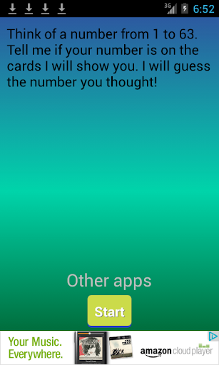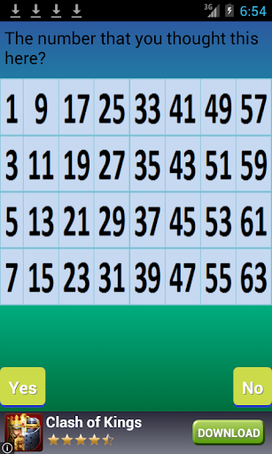 This free application guesses the number you're thinking of, it's a funny and surprising magic trick you have to try. If you want to be an authentic mentalist try this game with people like your friends and relatives and you will be a mysterious magician. This free app is perfect to make a trick anywhere.