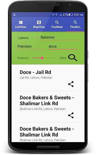 Search - if you are planning to visit Lahore then you can enter address and select category of the business and see all available places near you. You can choose the radius feature to filter data near you and you can either view that with 1km of your location or 50km from your current location which you cant even find on google places.
