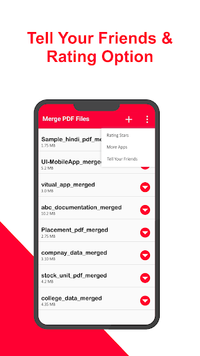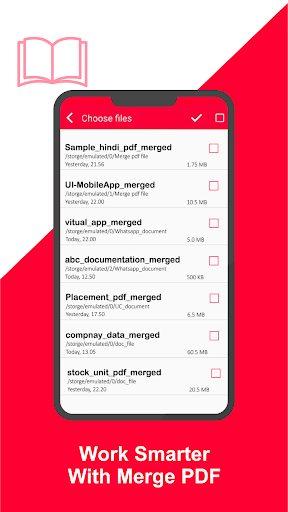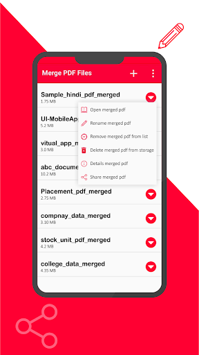 merge two or more PDF documents into one, You can easily merging your PDF files right on your device, just one tap to select your files, all the rest things will be automatically.