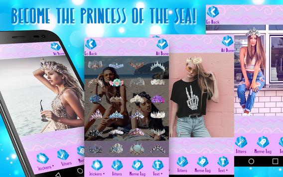 👸, is here to make you look majestic in a few easy steps! This "crowns photo editor" comes with many different "mermaid face crowns" that you can use to look super cool and completely unique! Take a photo, or choose one from your gallery, use our beautiful "mermaid editor", choose your favorite "mermaid crown", put it on your head and look like a "mermaid queen"! "Face stickers" are girl's new best friend and "mermaid makeup" is a new trend! Do you want to be a trendsetter? Download out top quality "mermaid photo editor" and wear that crown with pride!