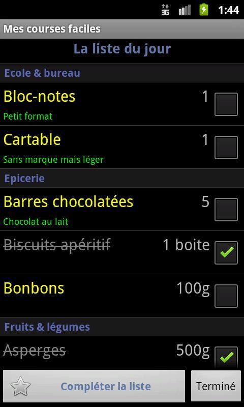 favorites , which is enriched, detailed and sorted according to your shopping list in the day and what you entered.