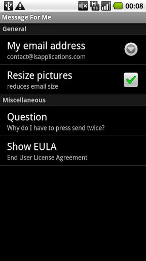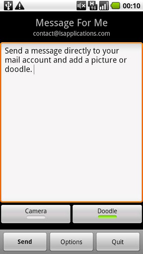 Efficient, simple, usefullAn idea? Send it with Message For MeEfficient, simple, usefullAn idea that you don39;t want to forget?Send it with Message For Me and add a photo or a doodle The app will send this information to your inbox or to an other email address of your choice so you can check it laterIt is directly sent to your inbox and not via a second server unlike other app