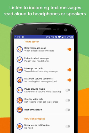Rocket Reply reads aloud incoming text messages into your headphones, allows to quickly respond with predefined phrases, transforms your speech to the reply text.