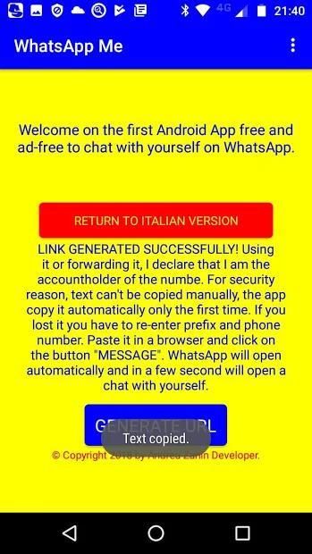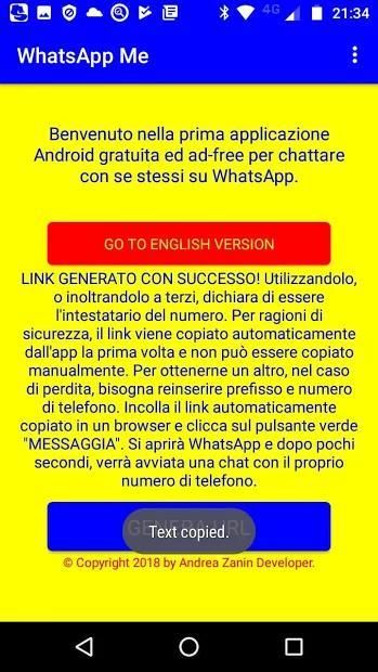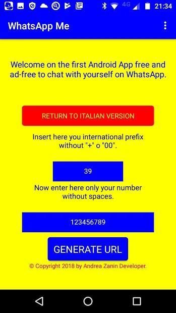 Avvia gratuitamente una chat con te stesso su WhatsApp.