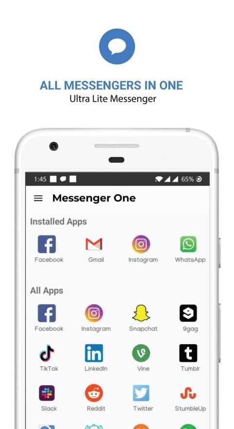 Some of the major social media and messenger apps integrated in this Messenger One Lite app are