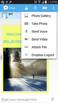 ● File share using Dropbox : Share photos, voices, video, and any type of file with your friends.