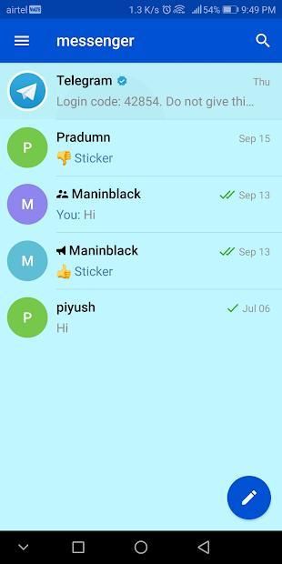 Hey guys welcome to new way of messenger.Made in India.Powerd by Telegram.Safe and easy to use.Lets talk with friend in secure way.